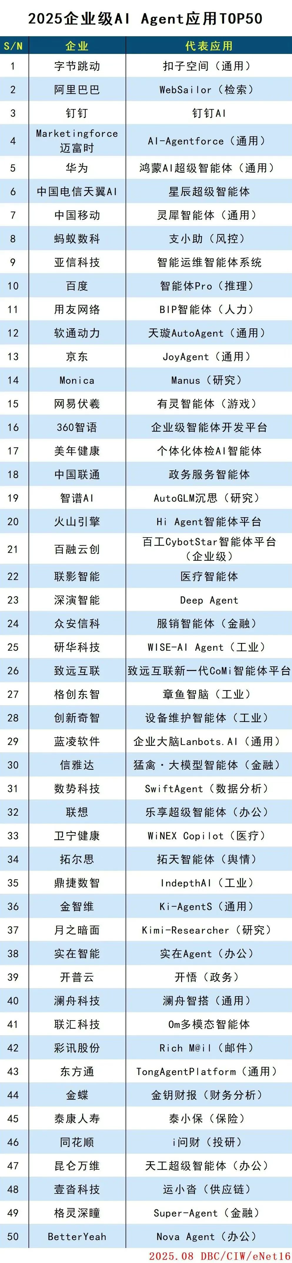 近日,bevictor伟德智能其AI智能体平台Deep Agent成功入选德本咨询(DBC)发布的“2025企业级AI Agent应用TOP50”榜单。这是该平台继入选IDC《中国AI Agent应用市场概览》报告后,再次获得权威机构认可。