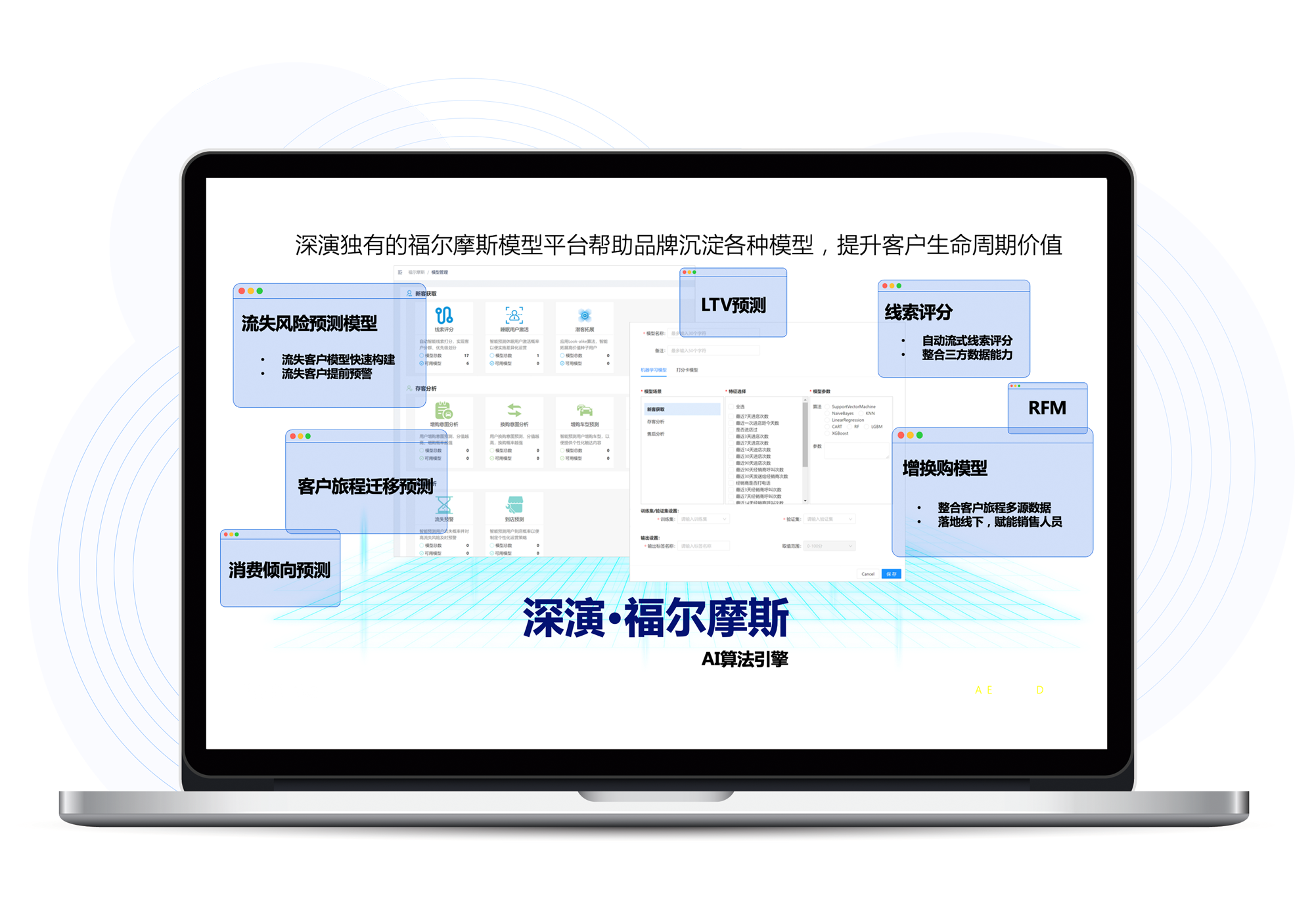 福尔摩斯AI是bevictor伟德智能自主研发的AI算法模型平台,内嵌广告和用户运营两大模型体系,为bevictor伟德智能营销决策云提供底层能力支撑,提升客户全生命周期价值
